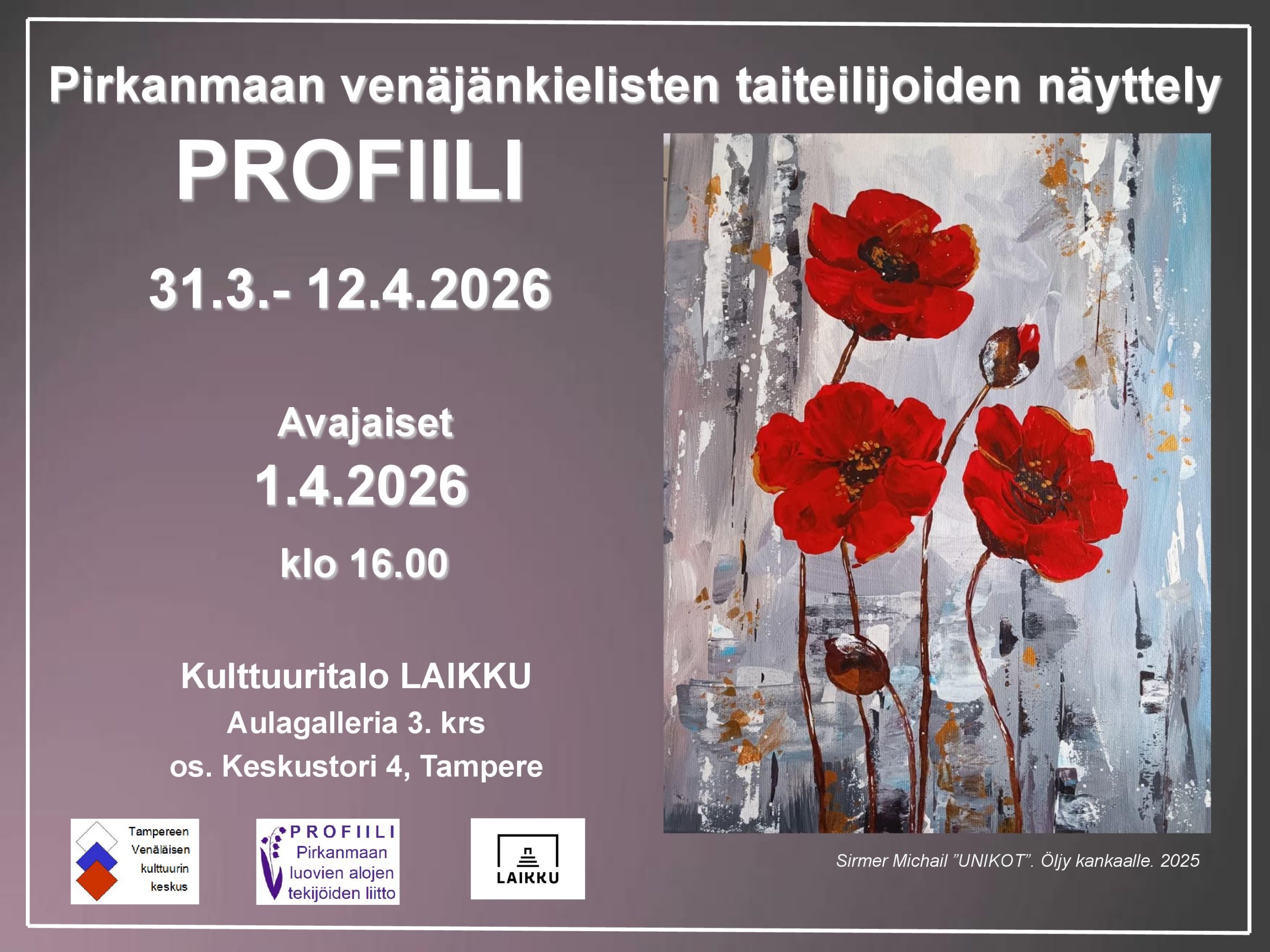 Приглашаются и художники, и зрители. У художников есть шанс выставить пару своих работ, а для «посетителей» выставки есть возможность оценить работы, поставив лайк под ними. Давайте приближать весну вместе! https://www.facebook.com/events/1424317051354980/?active_tab=discussion